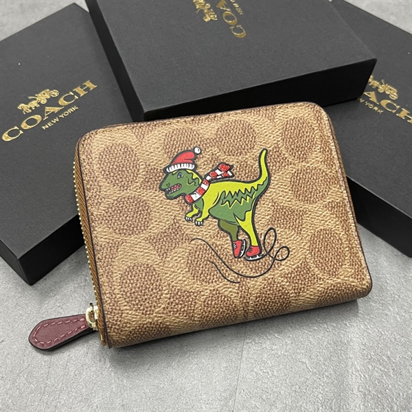 VÍ COACH NGẮN KÉO KHOÁ KHỦNG LONG MÀU NÂU