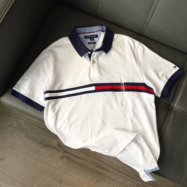 ÁO POLO TOMMY HILFIGER CHỮ TRẮNG - SỌC NGỰC CHỮ TRẮNG